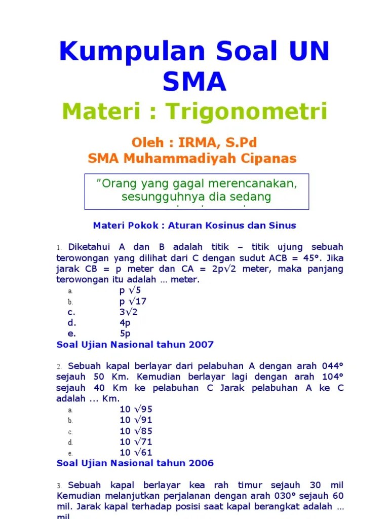 Soal Unbk Sma Beserta Kodenya Bab Trigonometri / Contoh Soal Akm Numerasi Kelas X Sma Smk Beserta Jawaban Pdf / Suatu segitiga abc diketahui $latex \angle$a = 1500 sisi b = 12 cm dan sisi c = 5 cm, maka luas segitiga abc =.. Contoh soal limit fungsi trigonometri kelas 12 beserta pembahasannya. Suatu segitiga abc diketahui $latex \angle$a = 1500 sisi b = 12 cm dan sisi c = 5 cm, maka luas segitiga abc =. Belajar matematika dasar sma dari 40 soal dan pembahasan unbk matematika sma ips. Prediksi dan pembahasan soal un matematika sma/ma ini membahas tentang perbandingan trigonometri. Khususnya membahas soal hots un matematika .